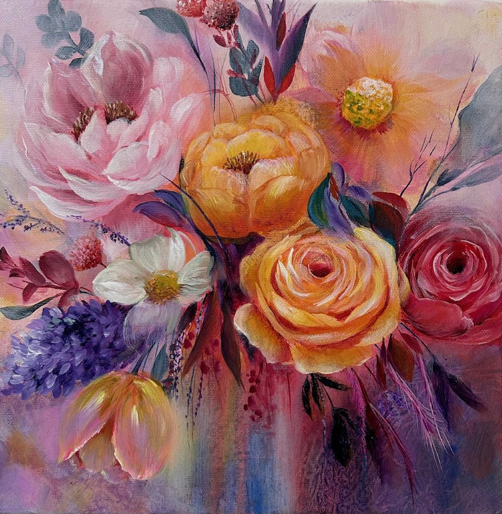I am a self taught artist and live in Warwickshire in the UK with my family and several pets!! I am never happier than when i am covered in paint and signing an original vibrant piece of art that I have put my heart and soul into creating. I am inspired by nature and i find the beauty of flowers both uplifting and hypnotizing and love to capture that feeling on canvas. I believe in 'Fearless Feminity', 'Inner Strength' that isn't shouted about & 'Power through warmth and kindness'. My aim is for my paintings to uplift your spirit and bring joy to your home with colour, energy and emotion.